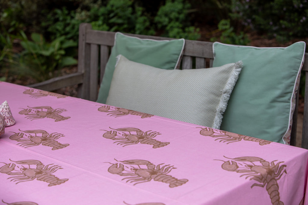 Our forever iconic Mandalay lobster print is back in our big version, hand block printed by our artisans
