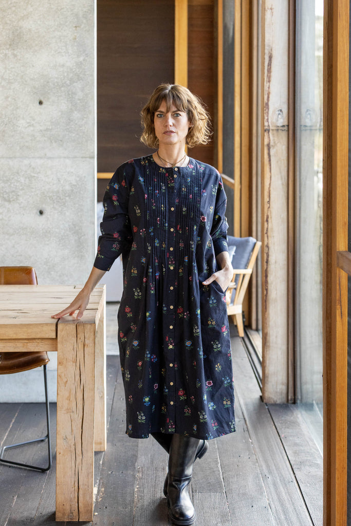 Featuring a delicate shirring front and back details contrasted with beautiful free flowing cotton poplin, this is our forever staple with some boots for endless autumnal days