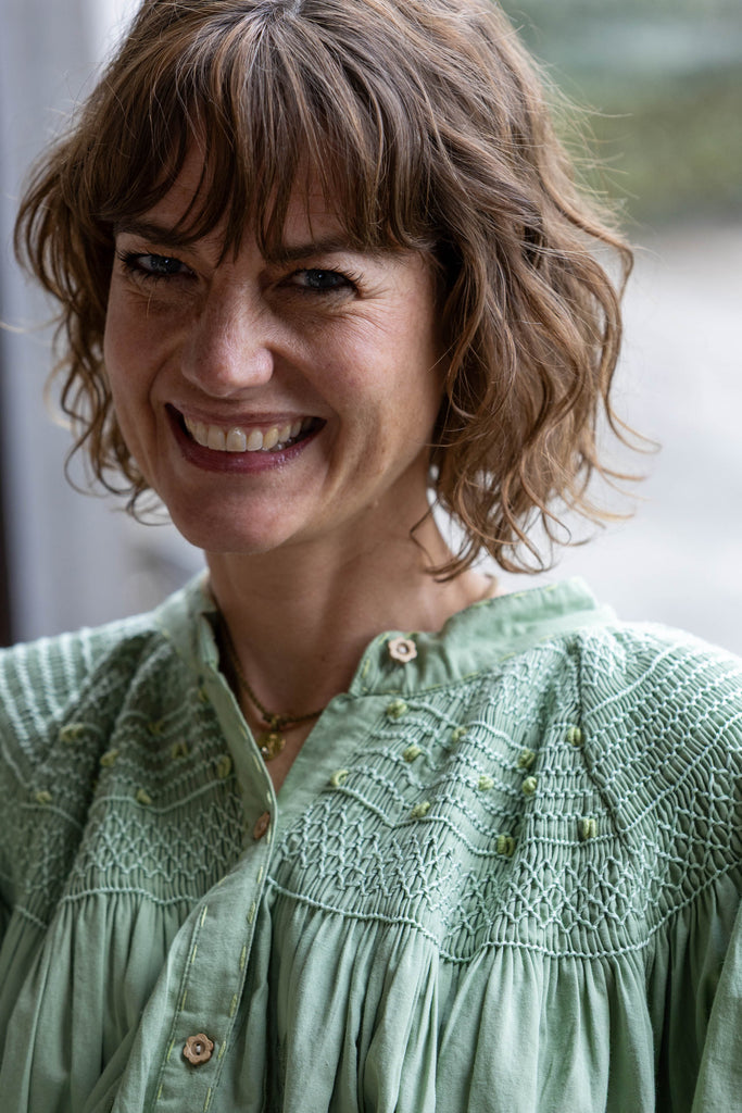 Featuring a delicate smocked detail contrasted with beautiful free flowing cotton poplin, and a matching waist tie, this is our forever staple with some heels or boots for endless autumnal days