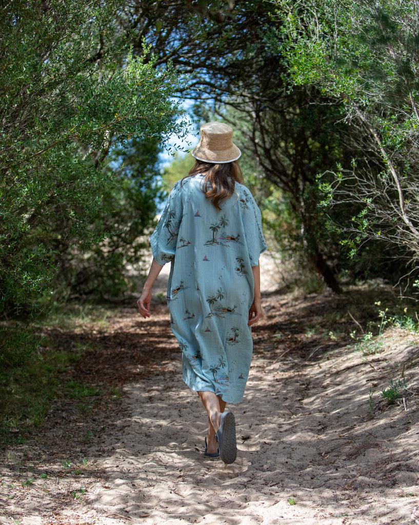 The Yas Palms Caftan features our iconic free flowing style with delicate button details and versatile sleeves, all made with the softest pure linen